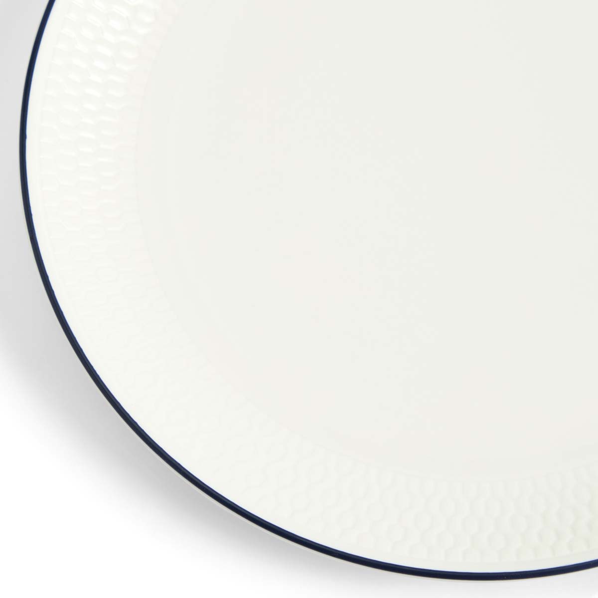 Dieses elegante, moderne Teller-Design besticht durch die unglaubliche Handwerkskunst und Kunstfertigkeit von Wedgwood, vom feinen Bone China-Körper bis hin zu den zarten, subtil handgezeichneten tiefblauen Akzentlinien.