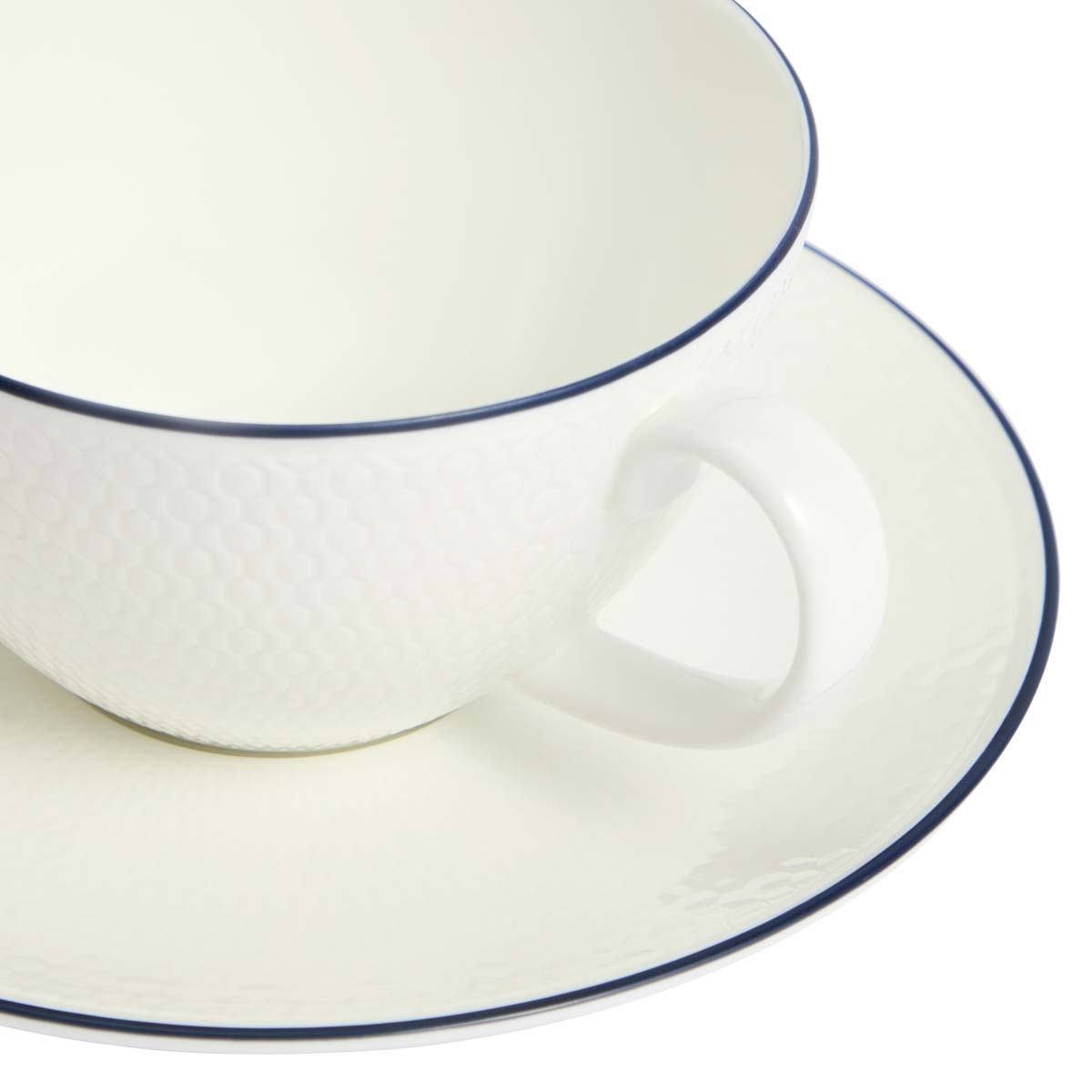 Ein entzückendes Teetassen- und Untertassen-Set aus feinem Porzellan, das eine Tasse Tee zu einem luxuriösen Erlebnis macht. Die blaue Linienoptik verleiht dem Design Eleganz und Farbe und macht es zum perfekten Geschenk für einen besonderen Menschen, der Tee liebt.