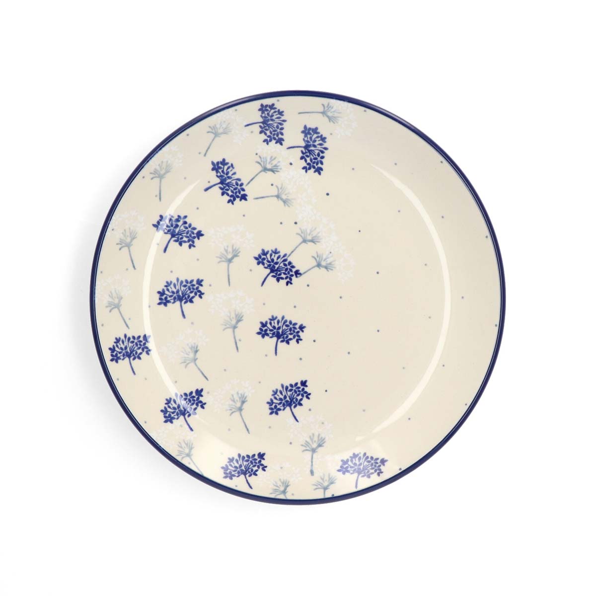 Felicity besticht durch seine elegante Schlichtheit und die harmonische Farbgestaltung. Auf einem cremefarbenen Grund entfalten sich zarte Blütenmotive in verschiedenen Blautönen - von feinem Hellblau bis hin zu tiefem Dunkelblau. Die filigranen Blütenstände wirken wie stilisierte Blütenkugeln, die sich leicht und luftig über die Fläche verteilen. Kleine, dezent gesetzte Punkte ergänzen das Muster und verleihen ihm zusätzliche Lebendigkeit, ohne dabei aufdringlich zu wirken.