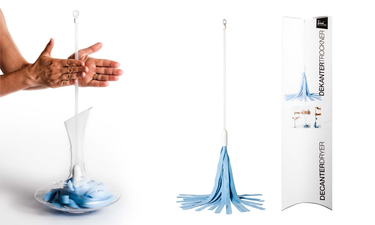 - Der DEKANTERTROCKNER ist geeignet für alle gängigen Dekantierkaraffen und Dekantierenten. Mit seiner patentierten Technik trocknet er die Karaffe von innen und vermeidet dadurch Wasserflecken. Die extrem widerstandsfähige, saugfähige und fusselfreie Mikrofaser (70% Polyester-Microfaser, 30% Polyamid-Microfaser) erreicht jede Stelle im Dekanter. Der Trockner ist 2teilig zum einfachen Zusammenschrauben.