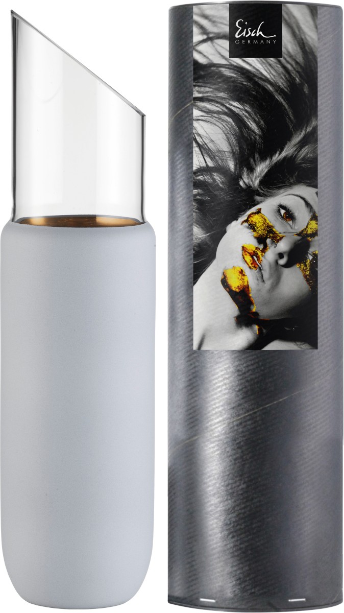 - 1 handgefertigte EISCH Karaffe COSMO weiß vielseitig verwendbar für Wasser, Wein, Saft, etc. - im schwarzen Stein-Look mit Echtgold-Veredelung. Die mundgeblasene Karaffe ist in einer schwarzen Geschenkröhre verpackt.