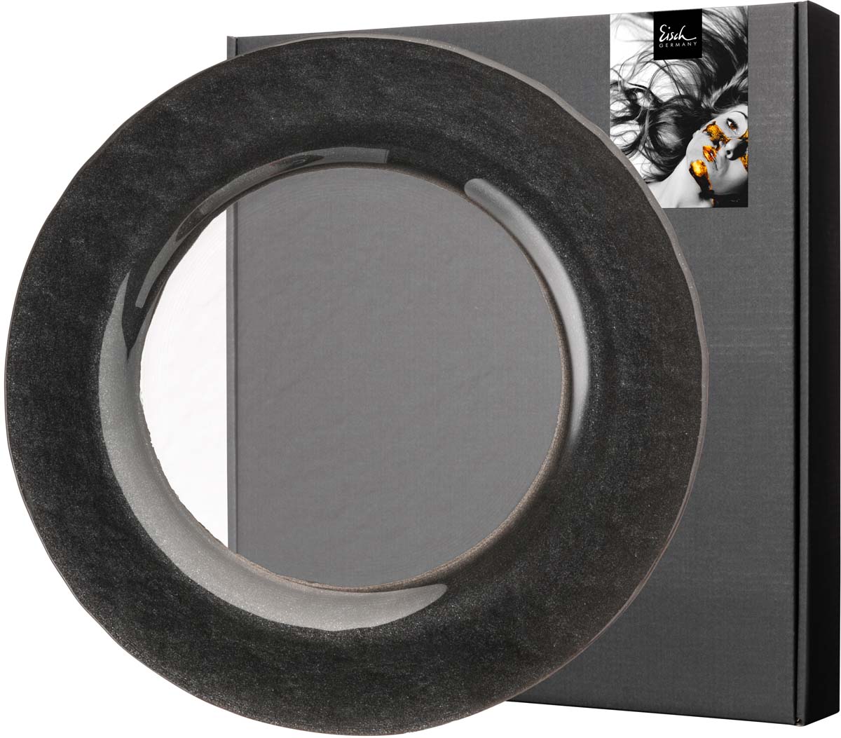 - 1 handveredelter EISCH Teller KAYA schwarz zum stilvollen Servieren von Desserts, Salaten, etc. 1 Teller ist im schwarzen Geschenkkarton verpackt.