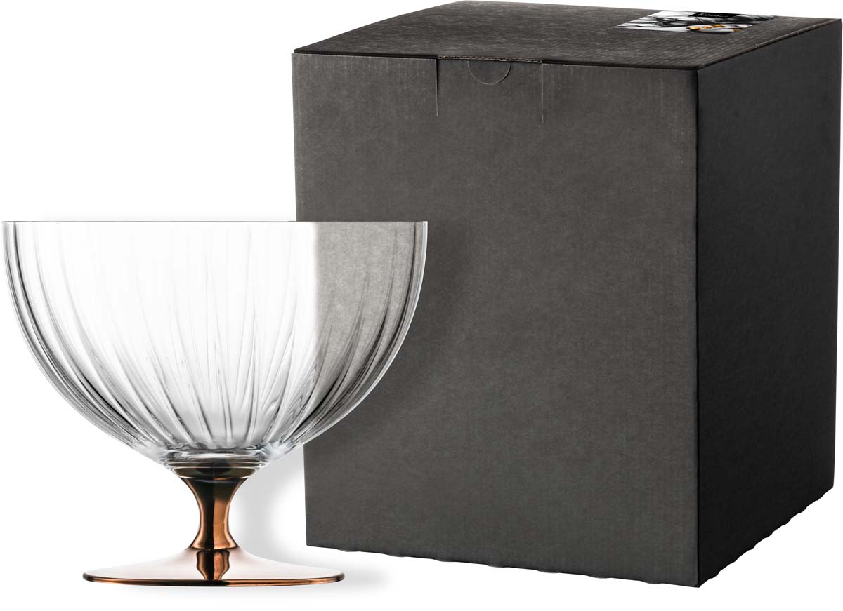 - Aus brillantem Kristallglas handgefertigt mit fein gerippter Struktur. Fuß und Bodenplatte der Schale sind in Handarbeit mit Kupfer beschichtet, das durch die EISCH GPC-Protect© -Technik dauerhaft geschützt wird. Handwäsche.