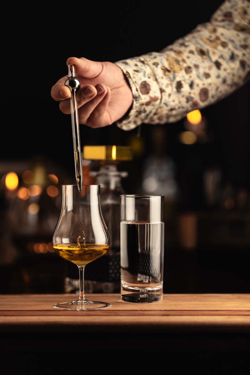 Hoher Alkoholgehalt kann das Aroma von Whisky und Rum überlagern. Ein paar Tropfen Wasser können versteckte Geschmacksnuancen freisetzen. Benutzen Sie Quell- oder stilles Mineralwasser mit niedrigem Mineralgehalt. Mit der Eisch Whisky/Rum-Pipette können Sie Tropfen für Tropfen verdünnen, bis der optimale Geschmack erreicht ist. Die Pipette wird aus stabilem Spezialglas handgefertigt. In den Veredelungswerkstäten der Glashütte Eisch wird in sorgfältiger Handarbeit echtes Platin aufgetragen und durch Beschichtung mit der EISCH GPC-Protect© -Technik geschützt
