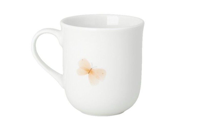 Gefertigt aus hochwertigem Porzellan, überzeugt der Becher durch seine feine Verarbeitung und angenehme Haptik. Der praktische Henkel sorgt für sicheren Halt und hohen Trinkkomfort. Ob für Kaffee, Tee, Kakao oder andere Heißgetränke - dieser Becher ist ein stilvoller Begleiter im Alltag und bei besonderen Anlässen.
