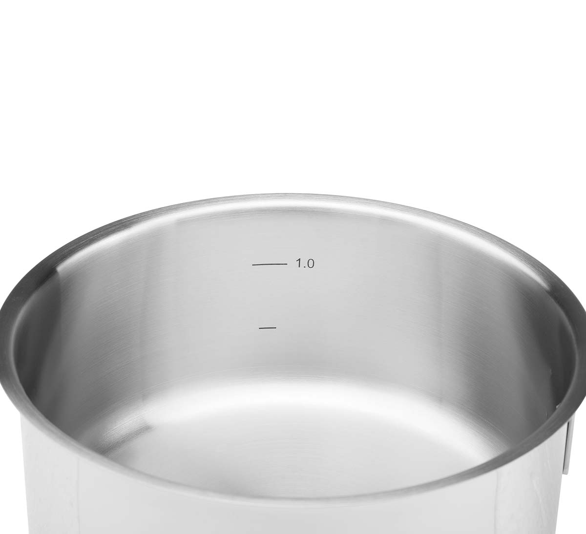Die Kasserolle besteht aus hochwertigem rostfreiem Edelstahl und ist für alle Herdarten geeignet, inklusive Induktion. Die praktische Innenskala erleichtert das exakte Abmessen von Flüssigkeiten direkt im Topf. Mit einem Fassungsvermögen von 1,5 L und einer Skala bis 1 L eignet sich die Stielkasserolle ideal für kleinere Portionen oder zum Kombinieren mit größeren Töpfen.