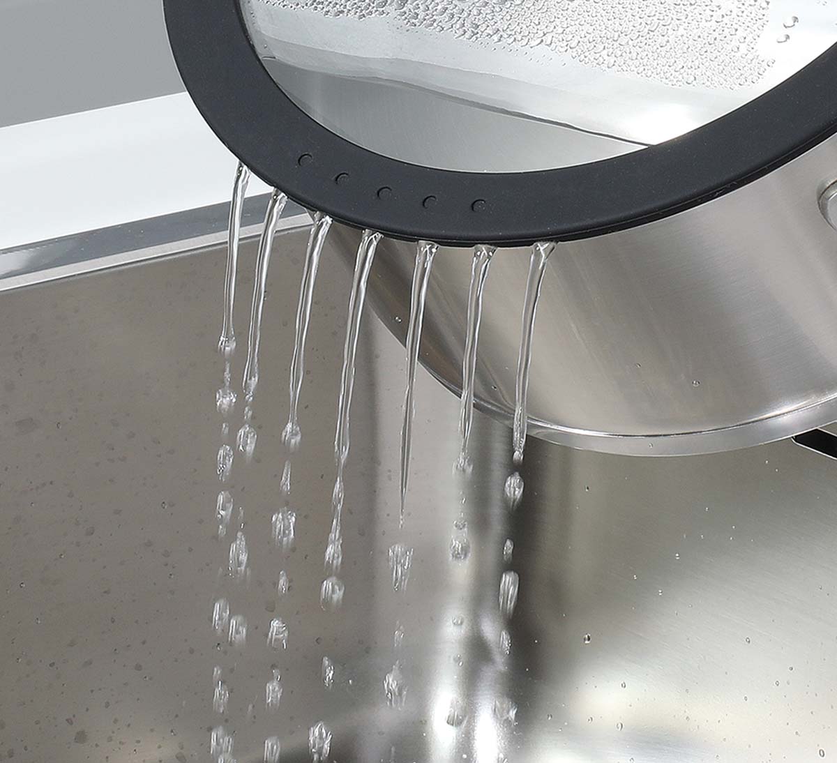 Die integrierte Abgieß- und Siebfunktion sorgt für komfortables Abgießen von Wasser oder Brühe direkt im Topf. Die wärmeisolierenden, silikonummantelten Griffe garantieren sicheren Halt beim Arbeiten, während die praktische Innenskala das exakte Abmessen von Flüssigkeiten erleichtert. Mit einem Fassungsvermögen von 2,0 L und einer Skala bis 1,5 L eignet sich der Kochtopf ideal für kleinere Portionen oder als Ergänzung zu größeren Töpfen.