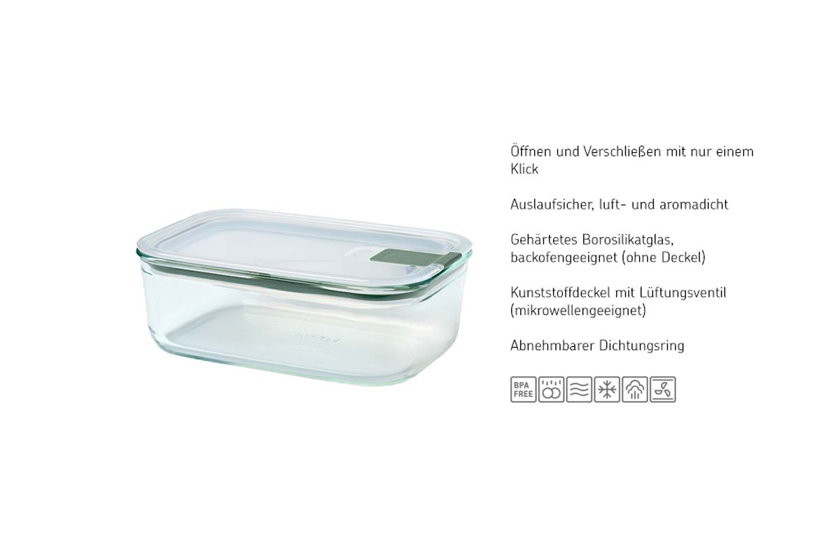 "Mepal Aufbewahren EasyClip 106166094700 Frischhaltedose aus Glas - 1000ml - Nordic Sage"
