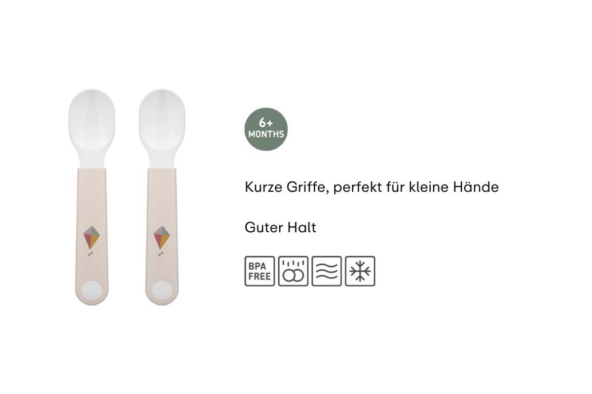 Der Löffel hat einen praktischen, kurzen Stiel, der es dem Kind leichter macht, ihn in den Händen zu halten. Dank seines festen Griffs rutscht der Löffel somit auch nicht ständig aus den kleinen Händen.