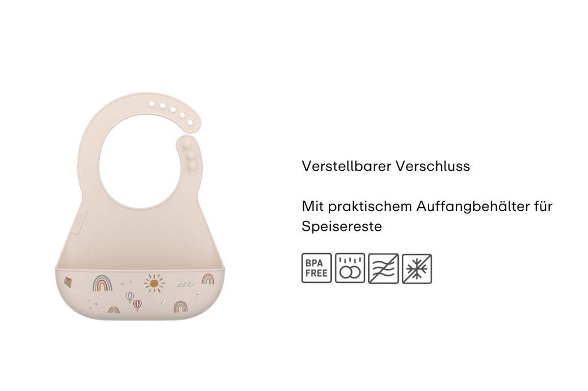 Das praktische Lätzchen sorgt dafür, dass die Kleidung Ihres Kindes beim Essen sauber bleibt. Dank der bequemen Passform und des verstellbaren Verschlusses sitzt es angenehm und passt sich perfekt an. Die integrierte Auffangschale fängt herunterfallende Essensreste auf, während das strapazierfähige Material eine lange Nutzungsdauer garantiert und sich mühelos reinigen lässt.