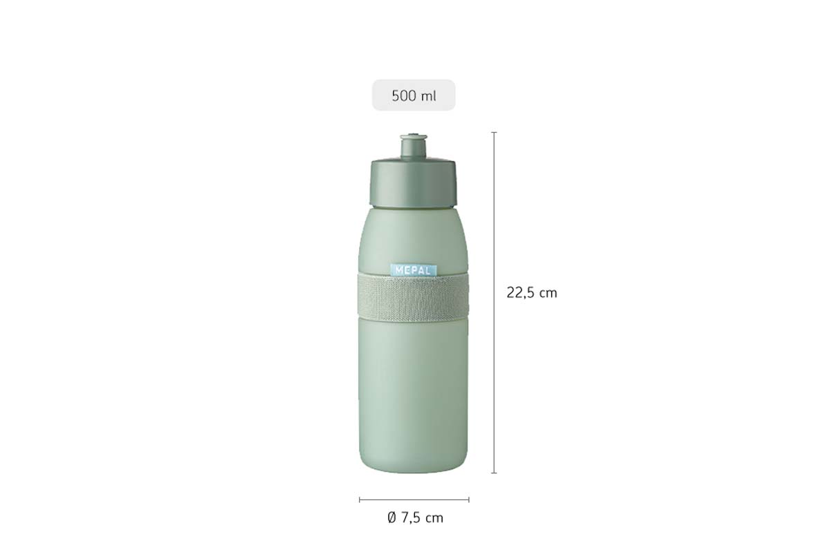 Diese stilvolle und funktionelle Sporttrinkflasche von Mepal hat einen Volumen von 500 ml und ist ideal auf dem Fußballplatz, dem Fahrrad oder im Sportstudio. Durch die Verwendung von "soft touch" Materialien fühlt sich die Ellipse Trinkflasche nicht nur angenehm an, sondern man trinkt auch sehr komfortabel aus dem weichen Mundstück. Ein breites, graues Elastikband komplettiert die Sporttrinkflasche Ellipse und sorgt für einen rutschfesten Halt. Natürlich ist diese Trinkflasche absolut BPA-frei und kann nach Gebrauch (ohne Gummiband) in der Spülmaschine gereinigt werden.
