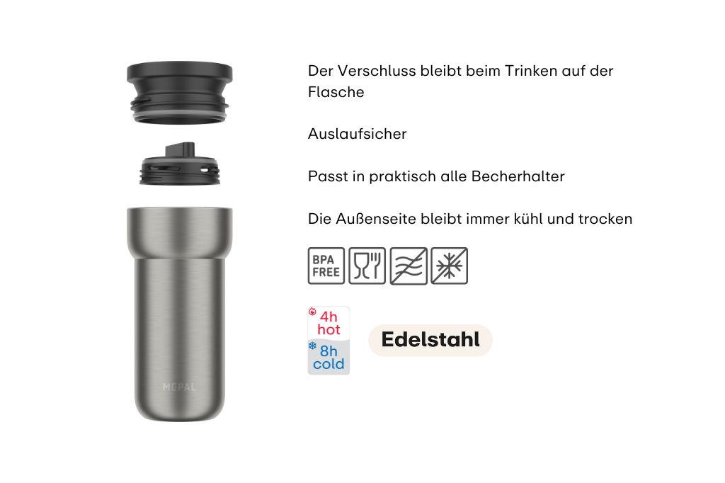 - hält bis zu 4 Stunden heiß und 8 Stunden kalt