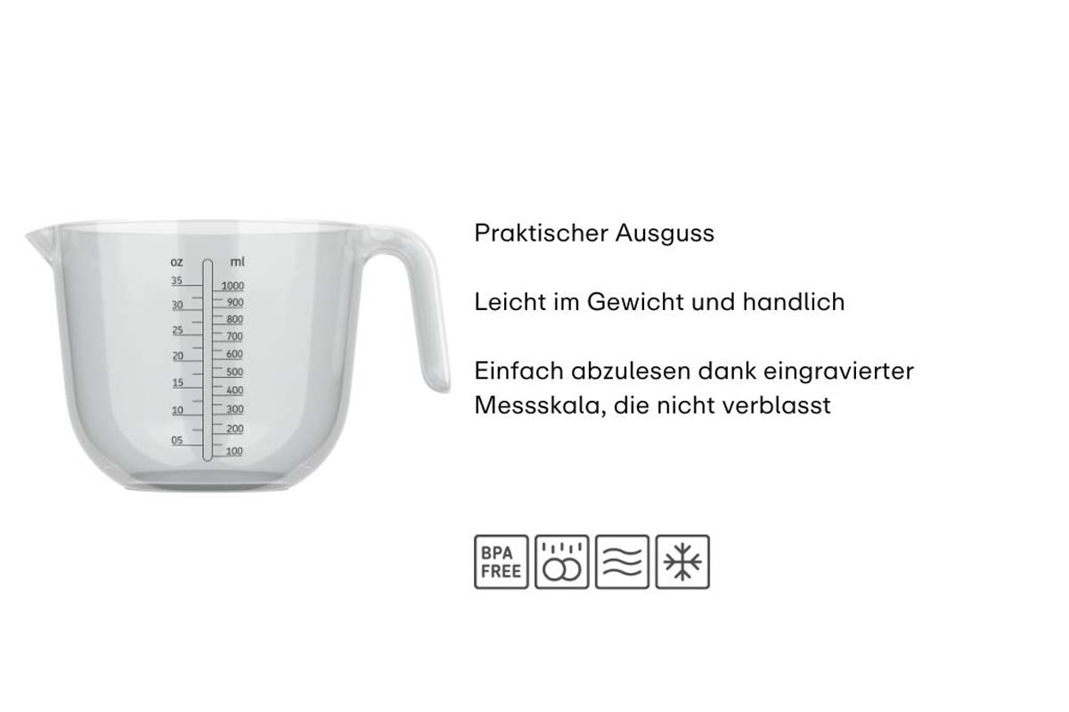 Der ergonomische Griff sorgt für eine angenehme Handhabung, während der präzise Ausguss ein tropffreies Eingießen ermöglicht. Ob Wasser, Milch, Öl oder Teig - mit diesem Messbecher gelingt jede Zubereitung spielend leicht.