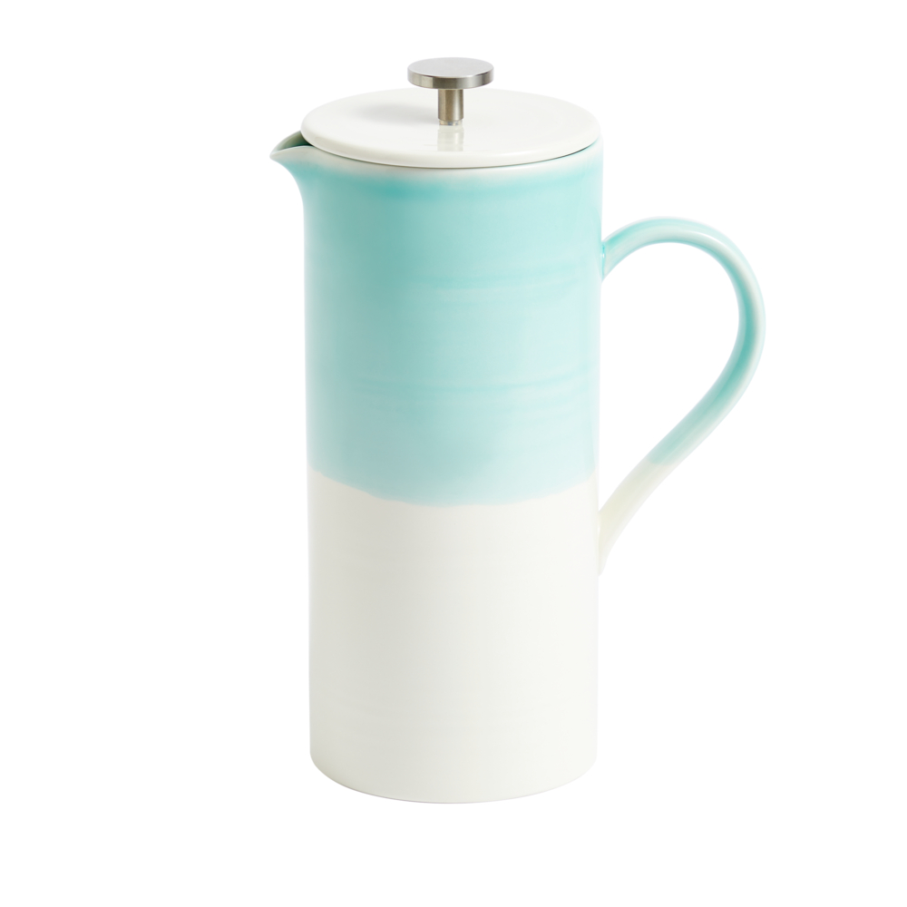 Werden Sie zum Barista in Ihrem eigenen Zuhause mit dieser French Press. Mit einer Anleitung für den idealen Brühvorgang wird das Aroma des gepressten Kaffees Ihr Zuhause erfüllen. Es ist wichtig, die richtige Kaffeemenge im Verhältnis zur Wassermenge zu verwenden und den Kaffee nach dem Aufbrühen schnell zu trinken, damit er dem gemahlenen Kaffee keine Aromen entzieht. Diese teilweise in eine türkise Glasur getauchte und in einer stilvollen Kraftbox verpackte French Press eignet sich perfekt für Gäste und zum Verschenken.