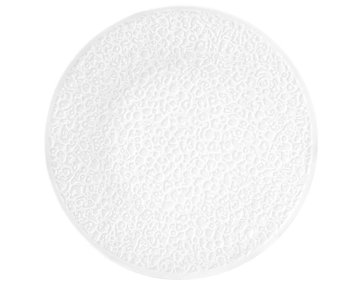 Mit dem fein gearbeiteten Relief präsentieren Sie Ihre Speisen nicht nur, sondern inszenieren sie kunstvoll! So können Sie Arrangement von Speise und Porzellan kunstvoll auf den Punkt bringen.