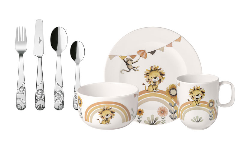 " Roar like a lion" - Bei dieser Kinderkollektion treffen ein charmanter Löwe und ein verspielter Affe aufeinander und vermitteln Freude und Spaß bei jedem Bissen.
