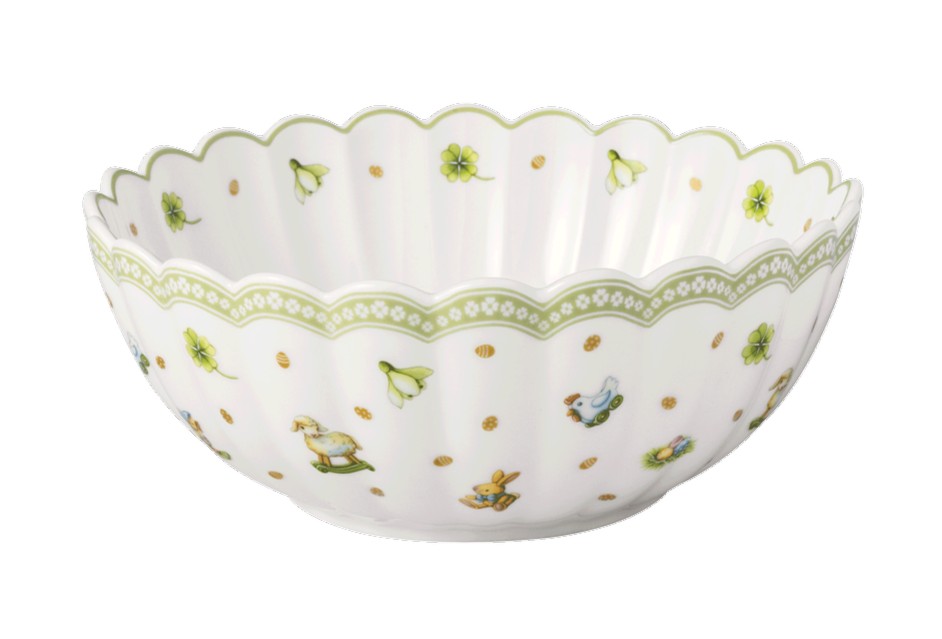 Das Dekor der Serie Easter Delight von Villeroy & Boch verzaubert mit seinem liebevoll gestalteten Osterdesign und einem Hauch nostalgischer Frühlingsfreude. Zarte Pastelltöne und fein ausgearbeitete Motive - darunter fröhliche Hasen, bunte Ostereier, frische Blumen und kleine Frühlingssymbole - schmücken den Rand des Dekors auf harmonische Weise.