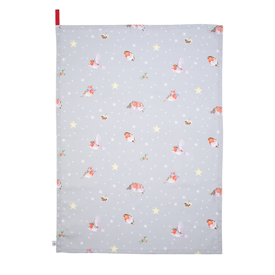 Das fabelhaft festliches Geschirrtuch Season's Tweetings ist die perfekte Ergänzung für Ihre Küche zu Weihnachten. Mit seinem charmanten Rotkehlchen-Muster auf verschneitem Hintergrund vereint es Stil und Zweckmäßigkeit mit einer praktischen Aufhängeschlaufe.
