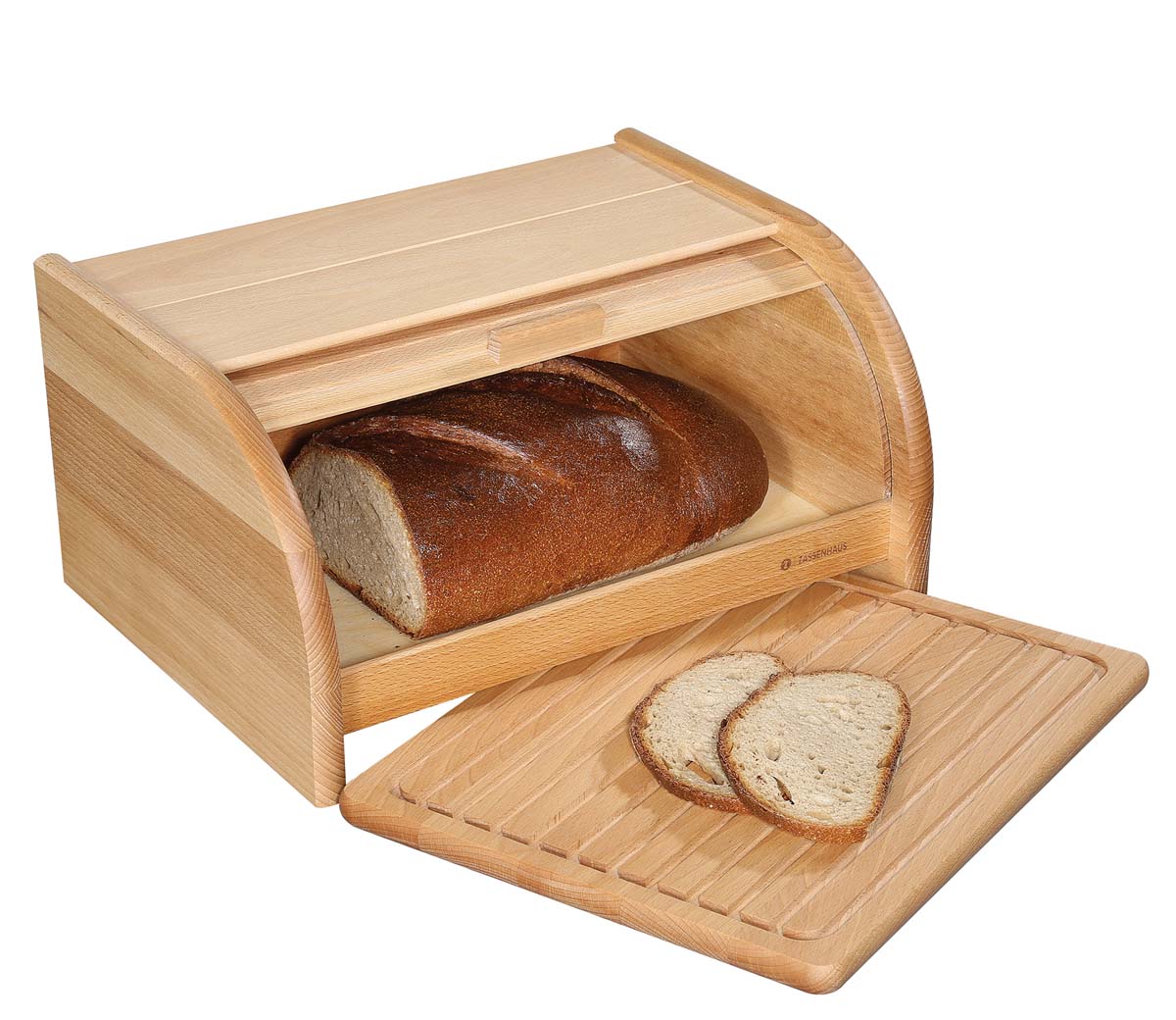 Gefertigt aus hochwertigem, gut belüftetem Buchenholz schützt der Brotkasten Ihr Brot vor Schimmelbildung. Der praktische Rolldeckel lässt sich leicht öffnen, während im unteren Fach das passende Brotschneidbrett mit Krümelrille auf seinen Einsatz wartet. So können Sie Brot hygienisch schneiden und direkt servieren. Durchdachtes Design, natürliche Materialien und ZASSENHAUS-Qualität machen den Brotkasten COUNTRY zum idealen Küchenaccessoire für Brotliebhaber.